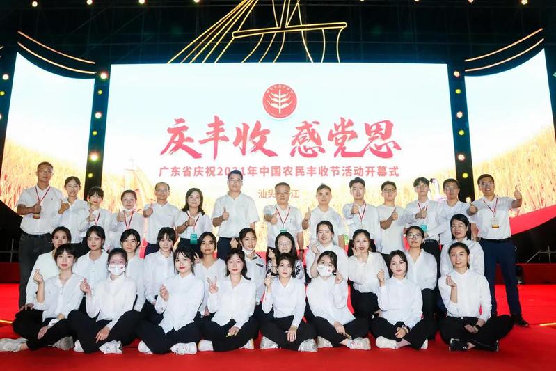 为更好地服务本次广东省庆祝2021年中国农民丰收节活动开幕式,在学院团委的高度重视和外语系的大力支持下,学院青年志愿者协会仅用半天时间完成了礼仪志愿者招募、面试和筛选,最终挑选出外语系10名同学担任本次活动的礼仪志愿者。活动中,她们以严谨的工作态度,专业的业务能力出色完成了志愿服务工作,向社会各界人士展示了我院青年学生良好的精神风貌,获得了主办方及现场与会人员的一致好评。
