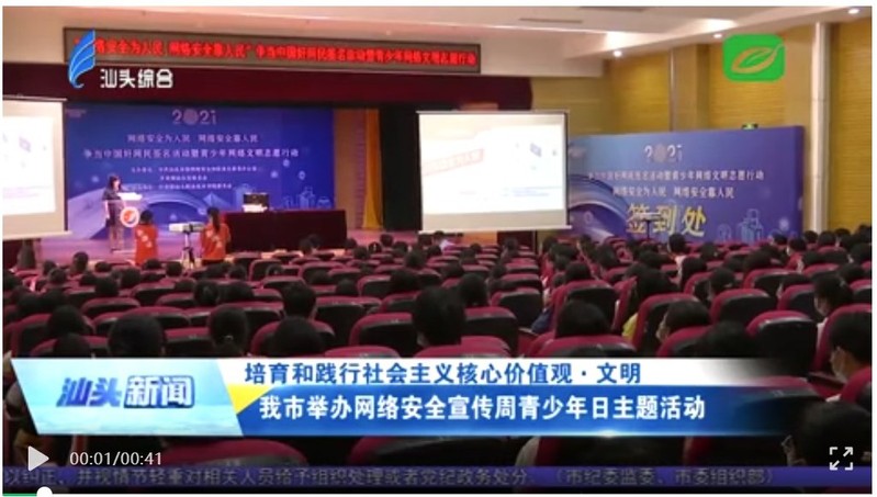为进一步增强青少年的网络安全意识和防护技能,深入学习宣传贯彻《中华人民共和国网络安全法》,增强青少年网络道德意识,引导青少年自觉抵制网上不良信息,共建网络文明,10月16日上午,由市委网信办、共青团汕头市委员会主办,纽约国际967线路测试团委承办的“2021年汕头市网络安全宣传周青少年日主题活动——“网络安全为人民、网络安全靠人民”争当中国好网民签名活动暨青少年网络文明志愿行动在纽约国际967线路测试金园校区举行,来自全市市直系统的网络文明志愿者和青少年学生近200人参加了活动。