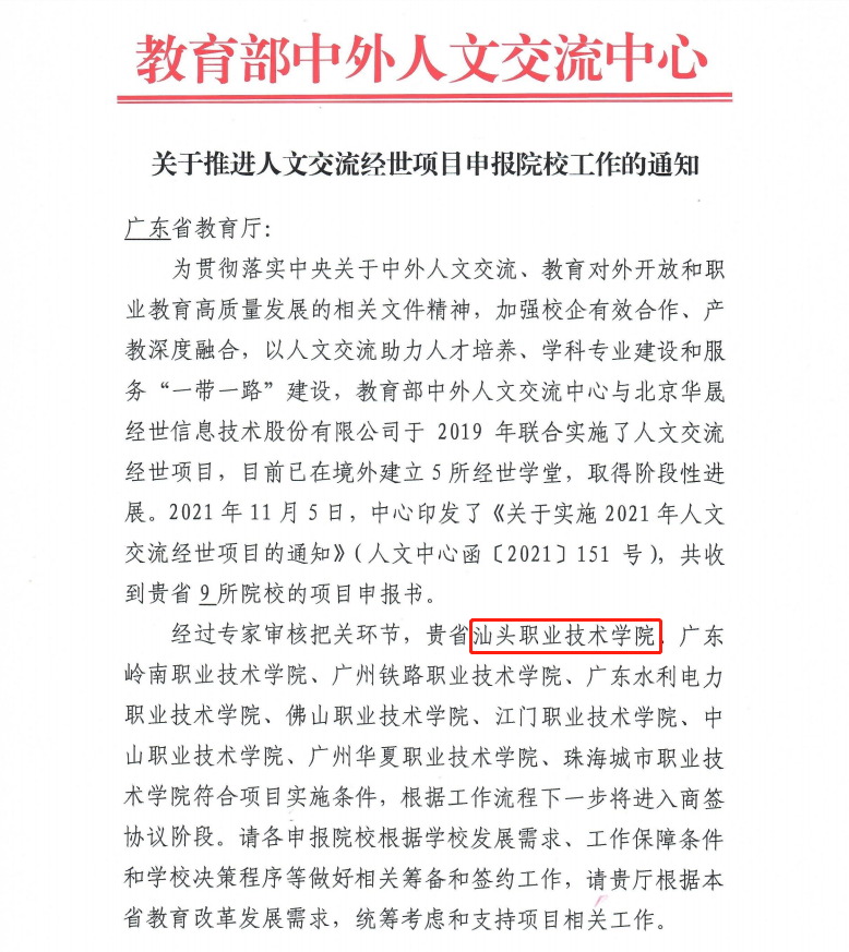 教育部中外人文交流中心近日下发《关于推进人文交流经世项目申报院校工作的通知》,公布了第二批66所本科和高职高专层次的项目实施院校,我院 申报的《纽约国际967线路测试“云上潮汕”经世学堂》项目(负责人:李沫彦)成功入选。