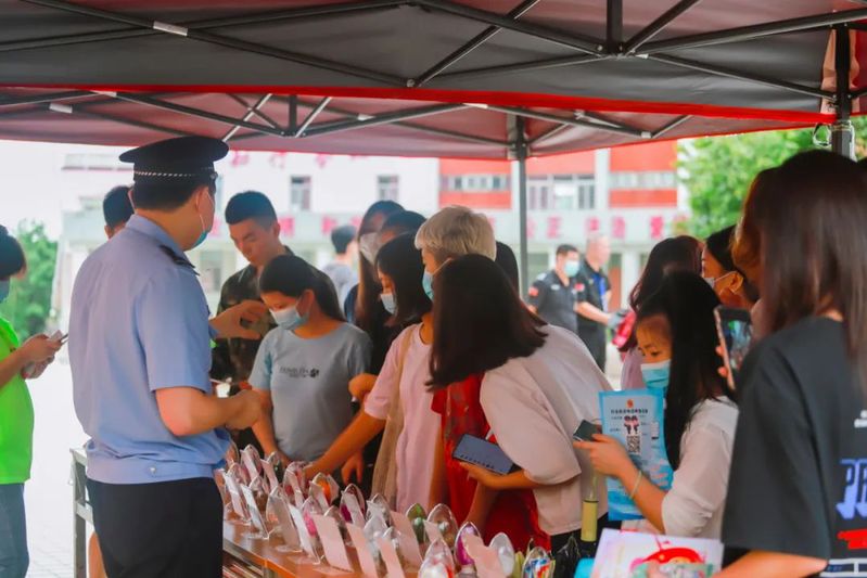 宣讲会结束后,在学术报告厅外举行了民警师生互动的宣传活动。“全民反诈、汕头无诈”主题宣传通过派发防范电信网络诈骗宣传单和现场指导下载反诈app,提醒同学们谨防各类诈骗手段,筑牢诈骗“防火墙”。“全民禁毒、无毒人生”主题宣传通过实物展示和专人现场解说,让同学们直观了解毒品的形态和危害性,提高对毒品的防范能力。“绿色交通,文明出行”主题宣传通过赠送“平安锦囊”,把各种常见交通违规的处罚标准、危害性等信息宣传到师生当中。