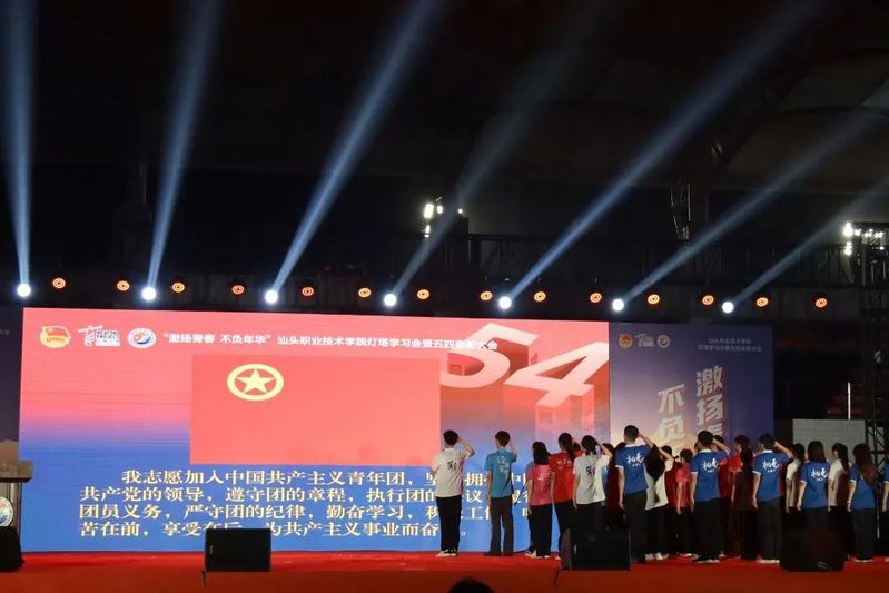 五四表彰大会后,灯塔学习会在“百年非遗”青狮表演《群狮共舞》中拉开帷幕,小狮子们随着鼓点向全场师生展示潮汕非遗文化;在舞蹈、舞台秀、潮乐合奏、武术表演 、独唱、器乐合奏、吉他乐队表演、无伴奏合唱、街舞、轻音乐演奏和最后的现代打击乐合奏《我和我的祖国》中圆满落幕。