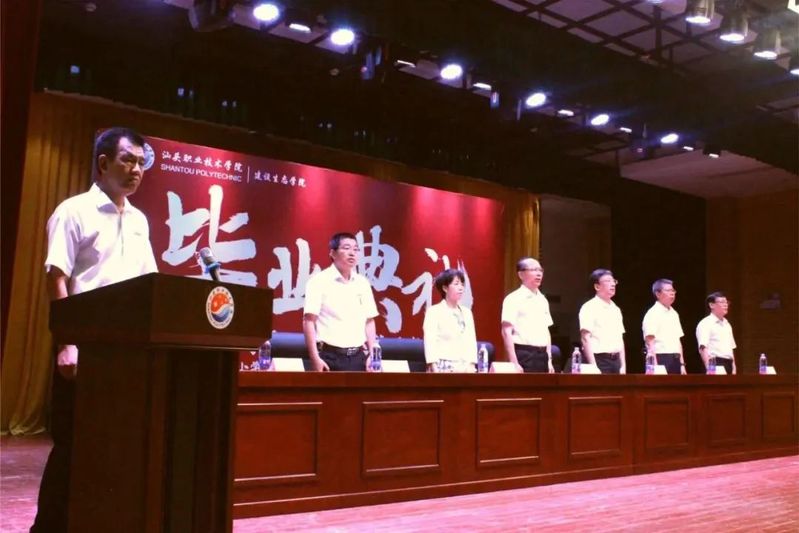 陈庭照副校长致辞。他指出,汕头市教育局、学校党委高度重视小学教育(全科)专业学生的培养工作,调配优质资源支持教育教学工作。他将“五颗心”赠予毕业生们:怀有一颗“家国情怀之心”、持有一颗“爱岗敬业之心”、拥有一颗“坚持不懈之心”、能有一颗“青春激情之心”、常有一颗“感恩敬畏之心”。